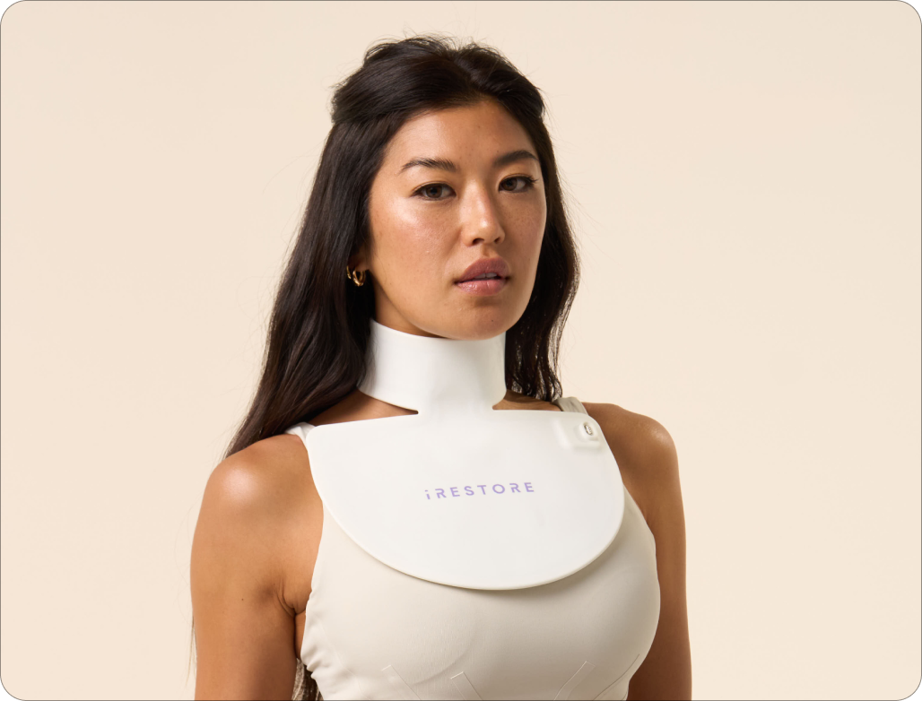 Smooths wrinkles, boosts collagen, and firms your neck and chest in just 10 minutes a day with 230 LED diodes.