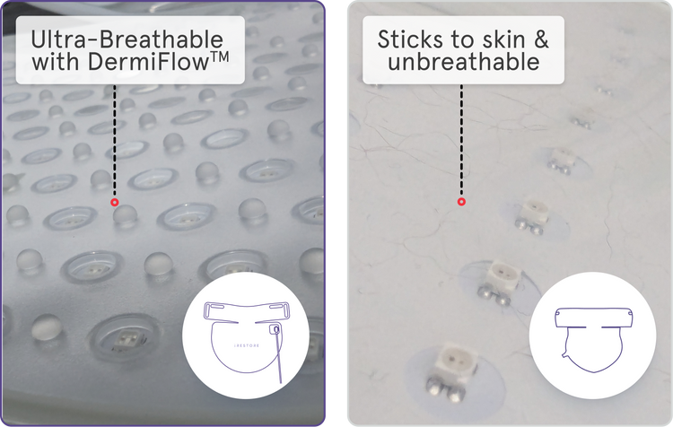 We also made the battery replaceable in a charger separate from the mask. This is a key difference between the iRESTORE design and other masks. Simply contact us to replace the removable charger if the Illumina battery wears down. (With other masks, once the battery dies, the mask is done.)